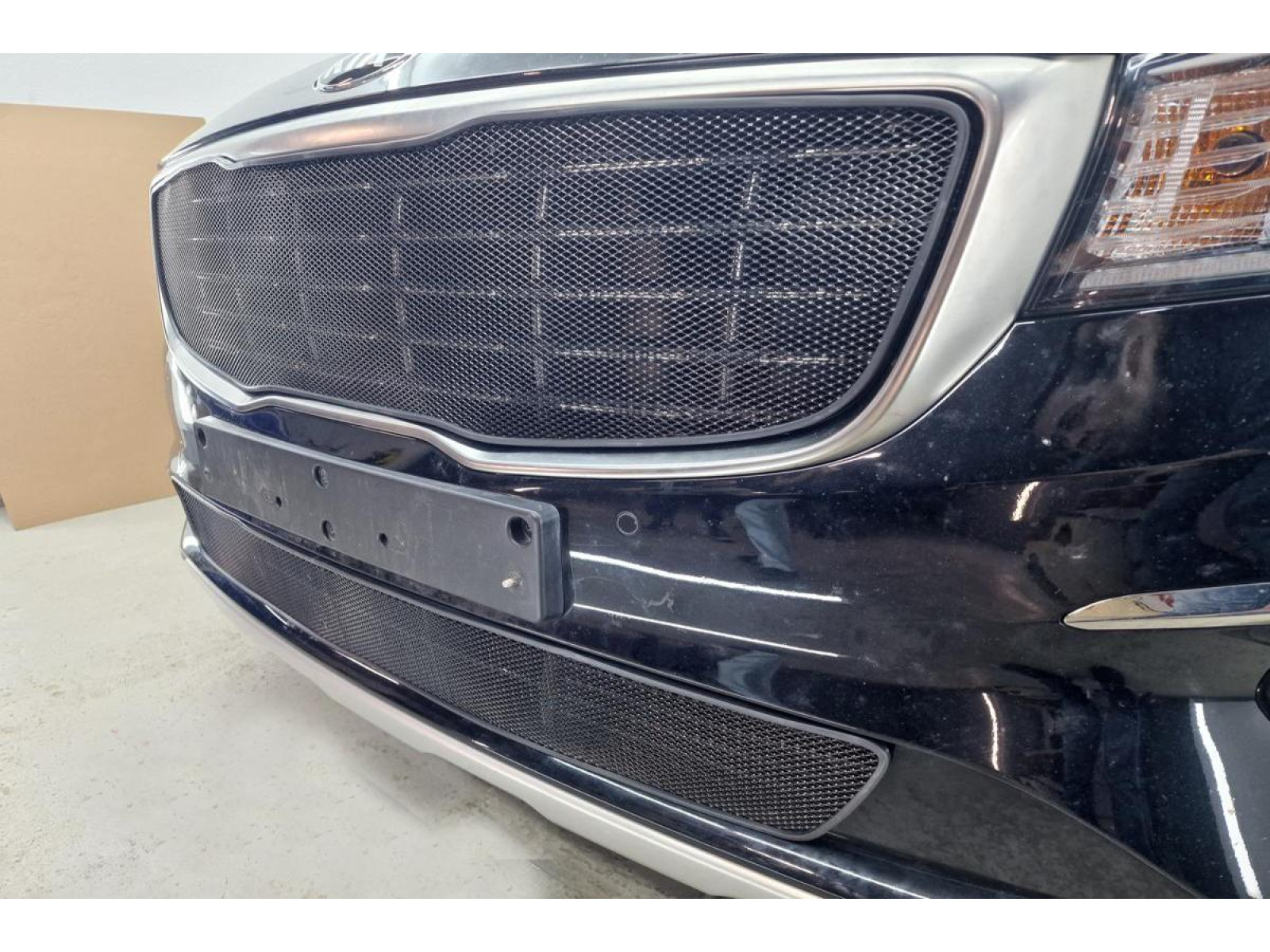 Окантовка защиты радиатора выполнена из мягкого черного пластика и проходит по всему контуру сетки. Она точно соответствует геометрии посадочного места в бампере, что предотвращает появление царапин и сколов на поверхности бампера при эксплуатации. Такое решение не только обеспечивает дополнительную защиту, но и придает изделию аккуратный завершенный вид.
