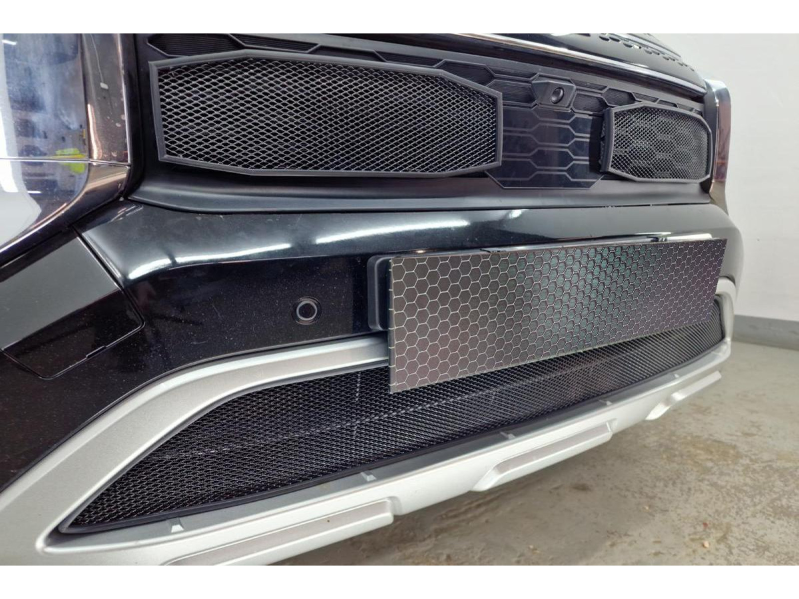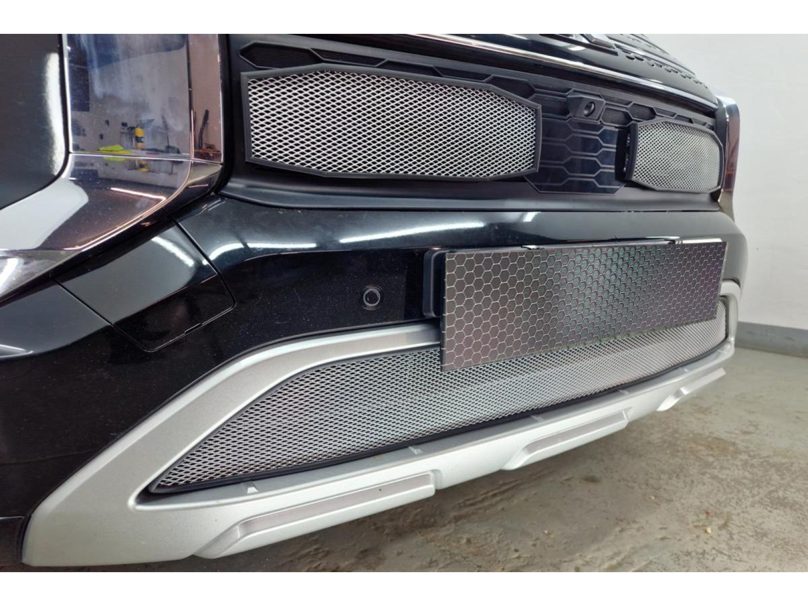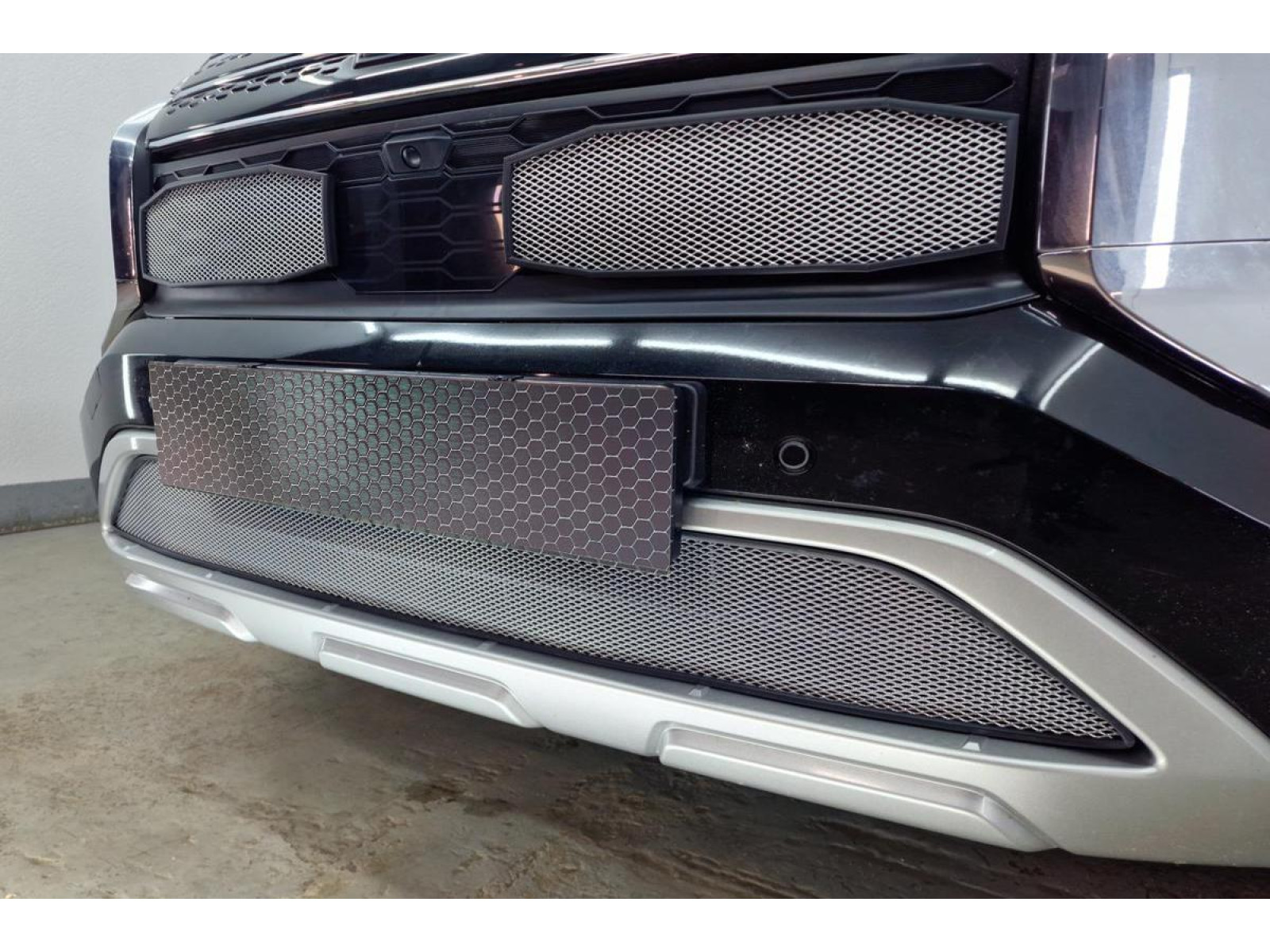 Окантовка защиты радиатора выполнена из мягкого черного пластика и проходит по всему контуру сетки. Она точно соответствует геометрии посадочного места в бампере, что предотвращает появление царапин и сколов на поверхности бампера при эксплуатации. Такое решение не только обеспечивает дополнительную защиту, но и придает изделию аккуратный завершенный вид.