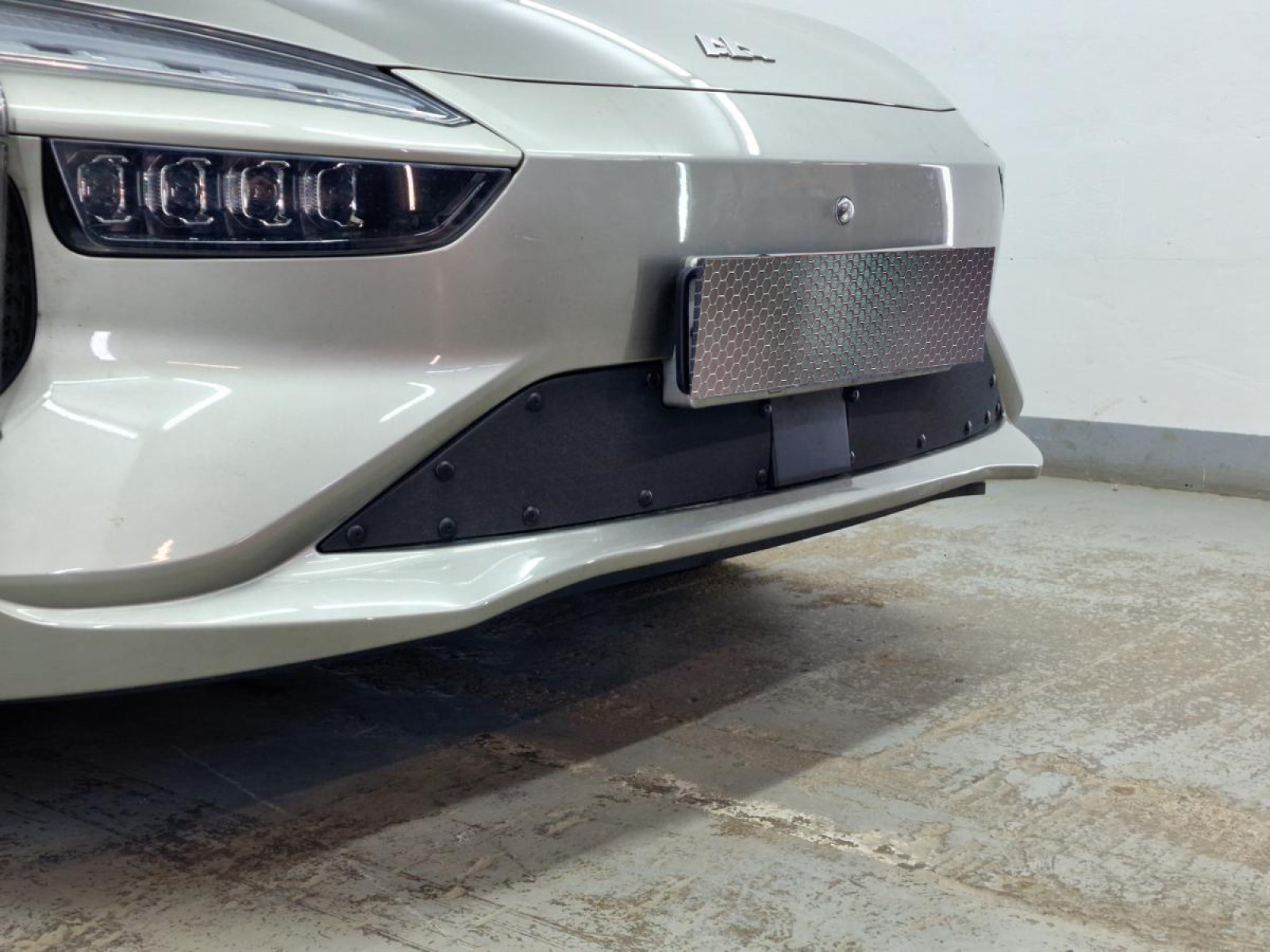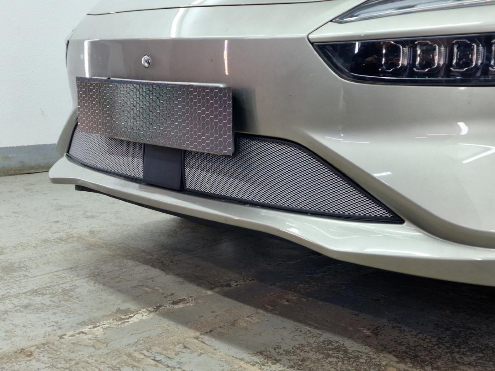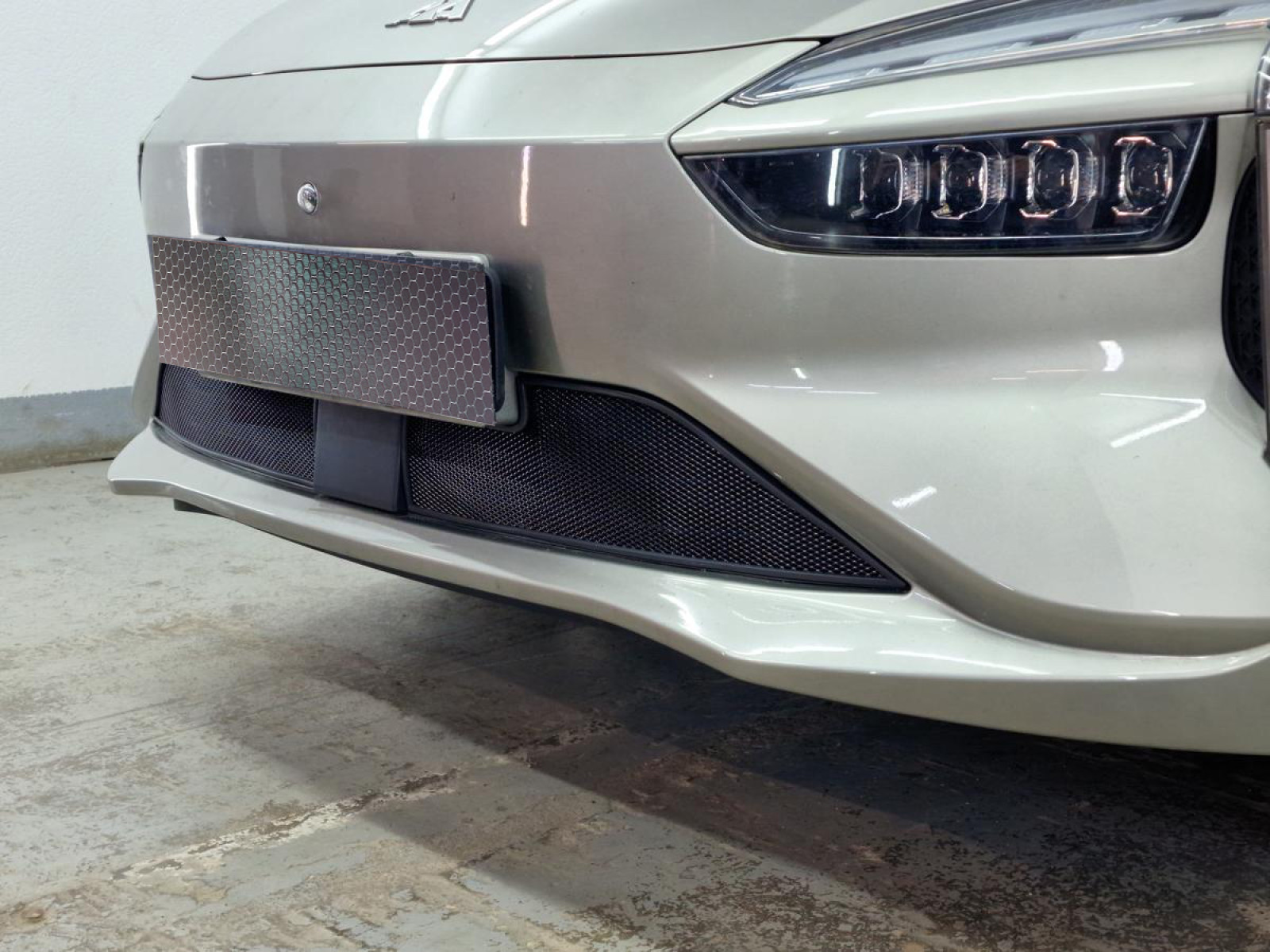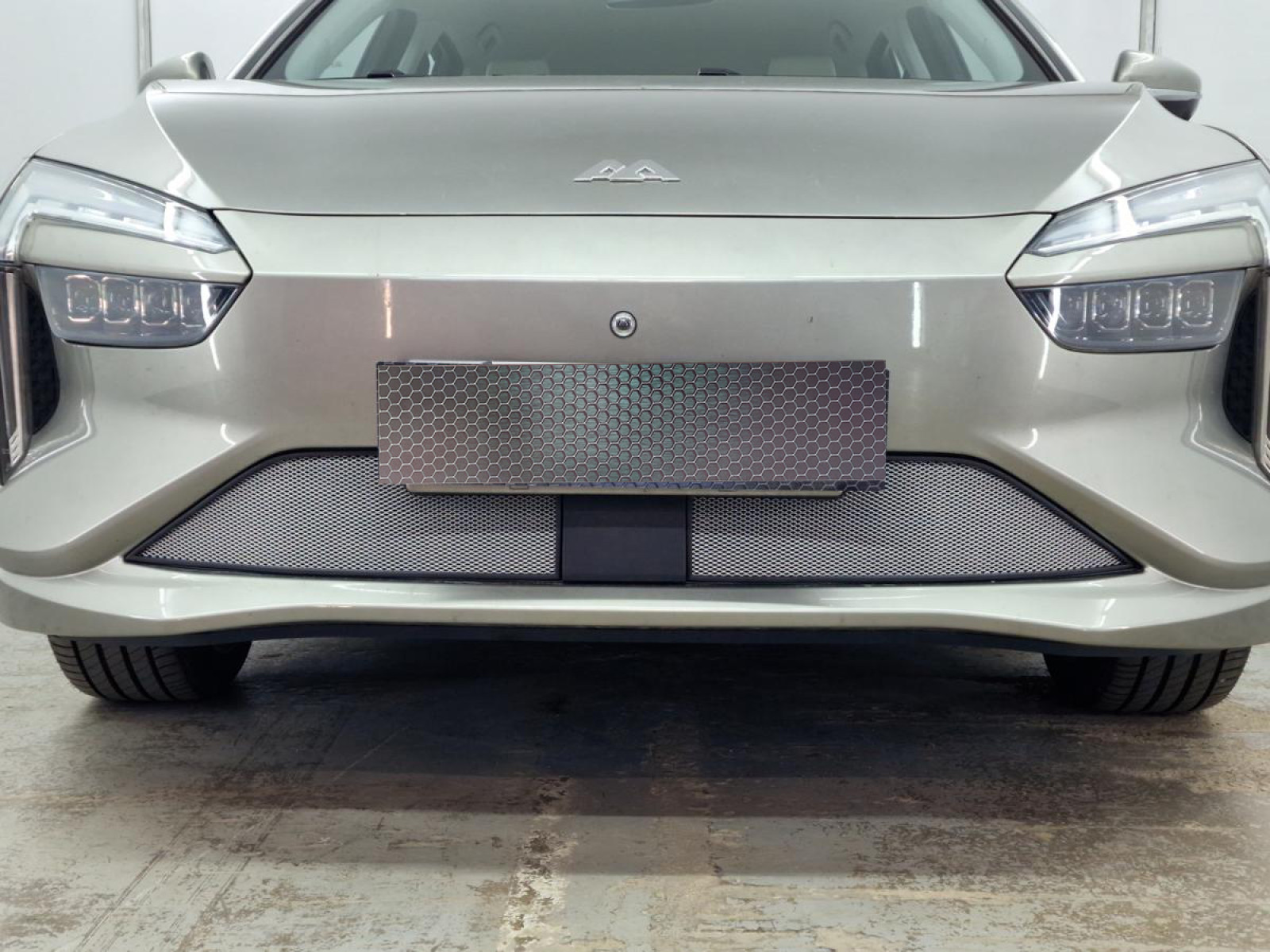 Окантовка защиты радиатора выполнена из мягкого черного пластика и проходит по всему контуру сетки. Она точно соответствует геометрии посадочного места в бампере, что предотвращает появление царапин и сколов на поверхности бампера при эксплуатации. Такое решение не только обеспечивает дополнительную защиту, но и придает изделию аккуратный завершенный вид.
