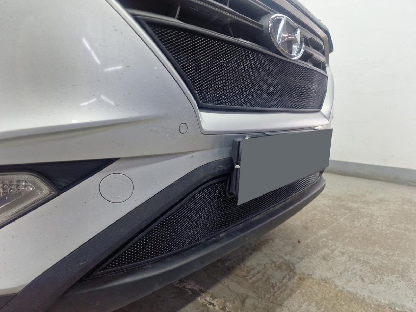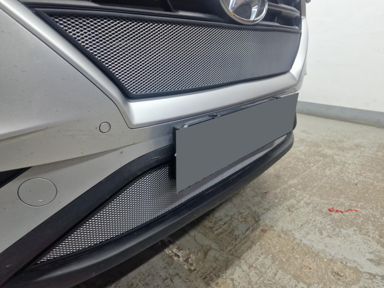 Окантовка защиты радиатора выполнена из мягкого черного пластика и проходит по всему контуру сетки. Она точно соответствует геометрии посадочного места в бампере, что предотвращает появление царапин и сколов на поверхности бампера при эксплуатации. Такое решение не только обеспечивает дополнительную защиту, но и придает изделию аккуратный завершенный вид.